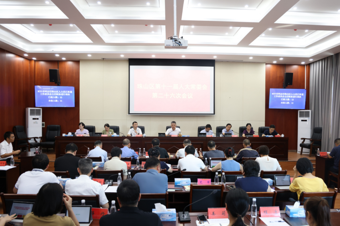 9月17日,珠山区第十一届人大常委会召开第二十六次会议。区人大常委会党组书记、主任程传冬主持会议,副主任余畅、程美玉、江华珍、徐笑红及委员出席会议,出席人数符合法定人数。区委常委、常务副区长杜钧瑞,区委常委、区纪委书记、区监委代理主任黄文超,区法院院长陈翰朋,区监委、区检察院、相关部门负责同志和各街道人大工委负责人列席会议。
