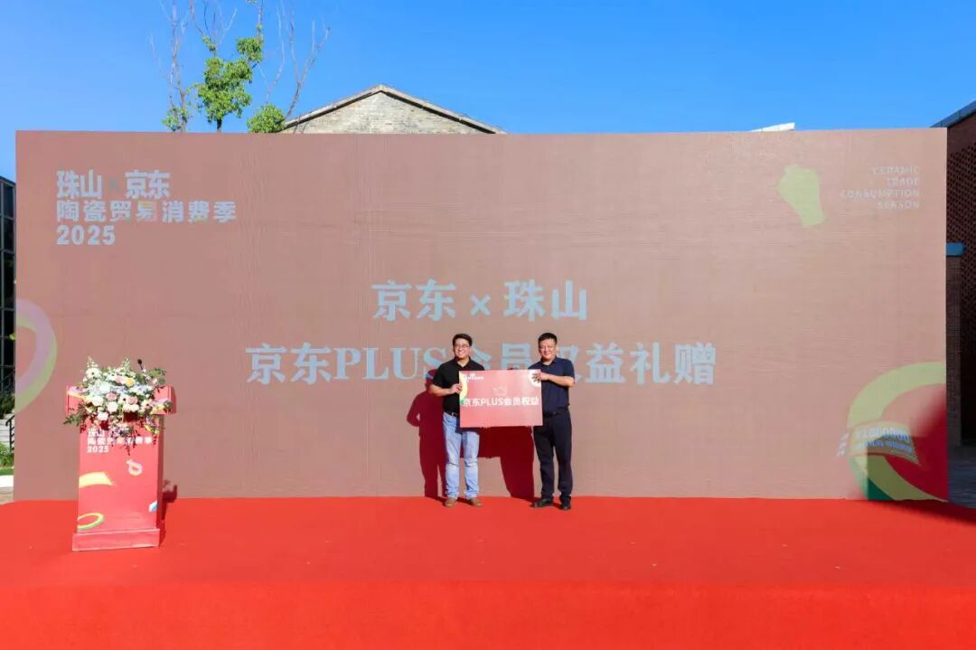 启动仪式上,景德镇官方旗舰店、象上陶瓷负责人分享了企业在陶瓷创新与市场拓展方面的经验。在互动环节中,京东集团向珠山区赠送了京东PLUS会员年卡。