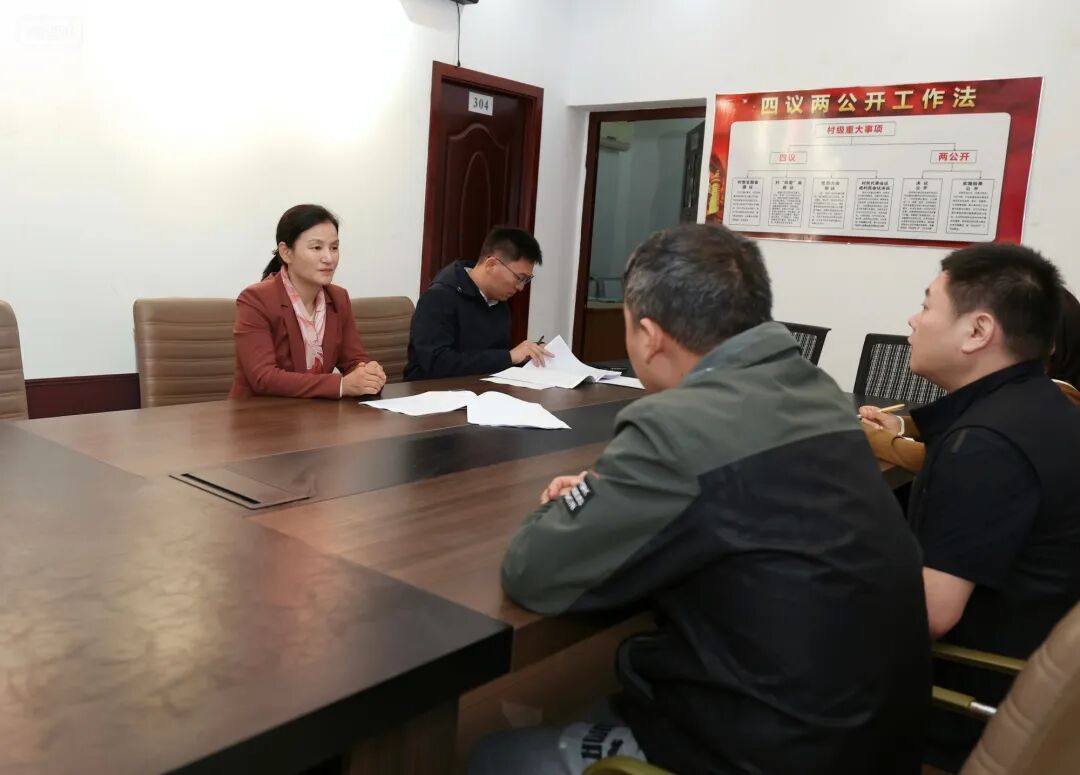 在竟成街道小港咀村委会,徐华询问驻村第一书记有关工作情况,现场查阅帮扶资料、危旧房改造管理台账,全面了解防返贫监测、产业就业帮扶、政策落实等情况。