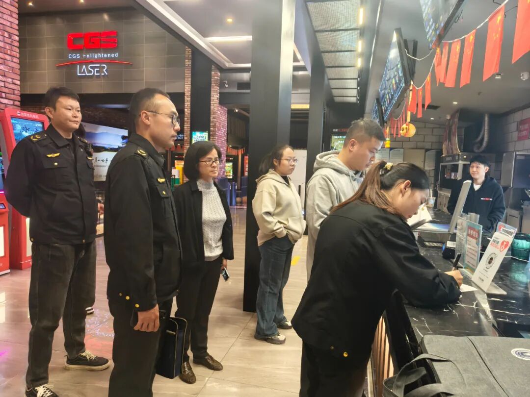 在安全生产方面,联合检查组针对影院、书店人员密集、用电量大、消防通道易堵塞等特点,排查消防设施配备、安全通道畅通、用电规范等安全生产措施落实情况。检查中影南方影城过程中,各部门依据职责分工,对影院的各类安全设施、管理制度落实情况进行了细致排查。市消防救援支队南河大队重点对影院的消防安全疏散通道、安全出口进行了现场检查和指导,强调了安全通道在紧急状况下保持畅通无阻的极端重要性,并要求影院负责人务必加强日常巡查,确保应急照明、疏散指示标志清晰有效,切实保障安全通道发挥其应有的作用。