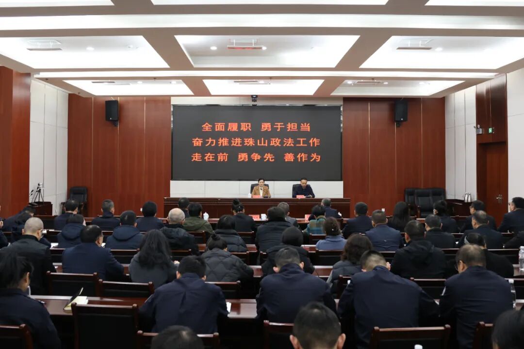 徐华强调,“学”为先,在夯实“学懂弄通”基础上提高政治判断力、政治领悟力、政治执行力。要把坚定拥护“两个确立”、坚决做到“两个维护”体现在行动上、落实到工作中,确保政法工作方向正确。要把人民群众满意作为政法工作的出发点和落脚点,既要守住政策法律底线,又要正确处理秩序与活力的关系。要深化法治珠山、平安珠山、阳光司法建设,开展好法治宣传教育,让法治珠山在群众身边蔚然成风。“严”为本,在践行“全面从严管党治警”要求上塑形象、整行装、再出发。牢牢把握政法姓党这一根本属性,严格落实中央八项规定精神,推动党内政治生活严起来、实起来。政法系统全体干警要秉公执法、公正司法,严守法治底线,保证权力在法治轨道上运行。要高度重视防范“四风”隐形变异新动向,把党风廉政建设融入日常、抓在经常。“实”为要,在落实“服务保障高质量发展”大局上强本领、勇担当、善作为。要优化法治营商环境,深化“千干入万企”活动,积极构建共建共治共享的社会治理大格局。要坚决维护陶瓷产业市场主体的合法权益和品牌形象,营造尊重创新、保护知识产权的良好氛围,助力国家试验区建设。要严厉打击电信网络诈骗等新型犯罪,积极开展普法宣传、法律咨询等活动,守护好人民群众的“钱袋子”。