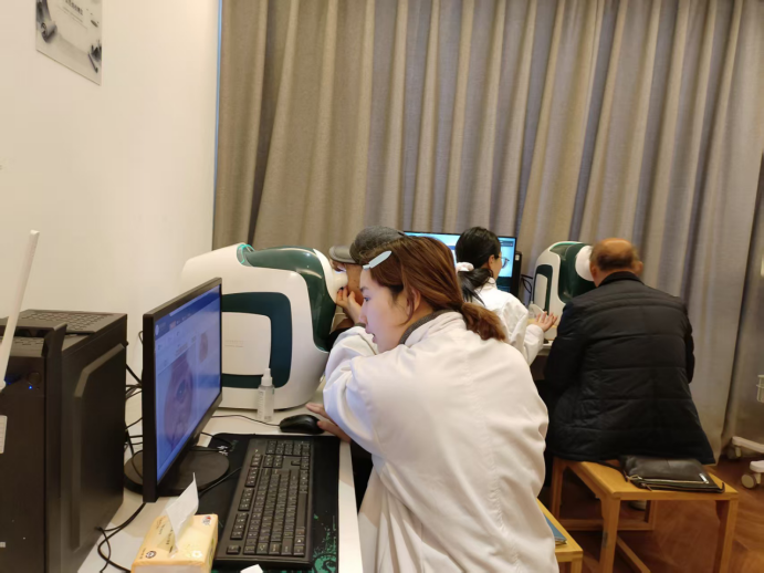 座谈会后,老干部们来到院士工作站,体验目诊仪等健康检测设备。专业人员现场讲解仪器使用原理与健康知识,为老干部们提供个性化健康建议,让老干部们切实感受到组织的关怀与温暖。