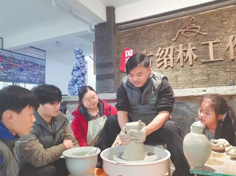 占绍林向学生传授手工制瓷技艺。本报全媒体记者 王景萍摄