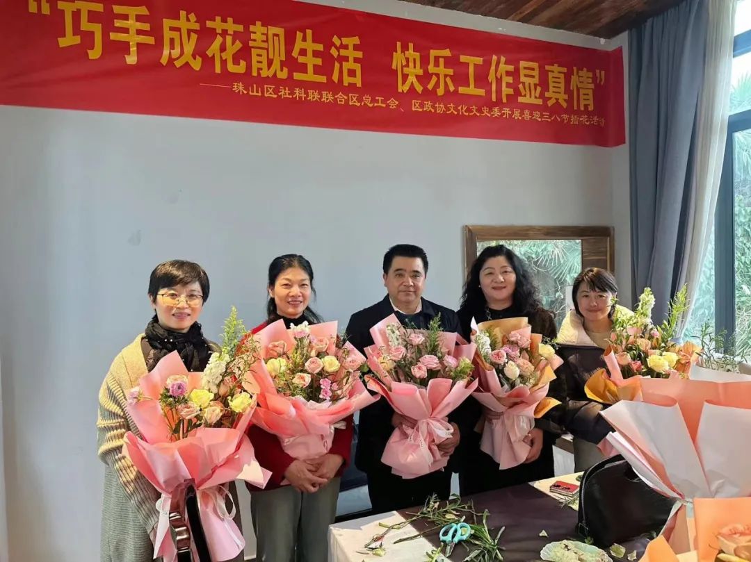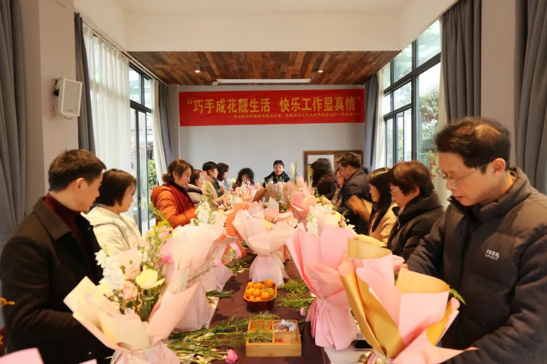 为深入学习贯彻落实全国两会精神,开展好宣讲活动,助力讲好“珠山故事”,同时庆祝好“三八”国际劳动妇女节,充分展示干部职工和政协委员积极乐观、健康向上的精神风貌。3月6日,区社联联合区总工会、区政协文化文史委员会开展贯彻落实全国两会精神社科普及宣讲暨喜迎“三八节”插花系列活动,区人大常委会党组副书记、区总工会主席汪涛,区政协副主席王娟到场,党内外干部职工和政协委员30余人参加活动。宣讲过程中,区社联有关负责人围绕贯彻落实全国两会精神,助力讲好“珠山故事”为主题,开展了社科普及宣讲活动,带领大家学习了习近平总书记在全国两会期间的重要讲话精神,并进行现场交流发言,大家各抒己见,对珠山经济社会发展提出了宝贵建议。大家纷纷表示,要以此次活动为契机,认真学习贯彻落实习近平总书记重要讲话精神和全国两会精神,切实把思想和行动统一到党中央决策部署上来,全力配合好区委、区政府,继续为珠山发展建言献策,助力珠山经济社会高质量发展。正值“三八”国际妇女节,宣讲结束后,举行了以“巧手成花靓生活,快乐工作显真情”为主题的花艺创作。花艺老师从插花器皿、基本花型、插花创作步骤等方面,详细讲授了插花的基本知识。在老师的指导下,大家纷纷拿起工具尝试修剪枝叶、搭配色彩、整合造型,将自己对美好的感知融入创作,享受着插花艺术带来的乐趣,现场花香四溢,充满欢声笑语,让党内外干部职工和政协委员度过了一个充实愉快、富有意义的节日。