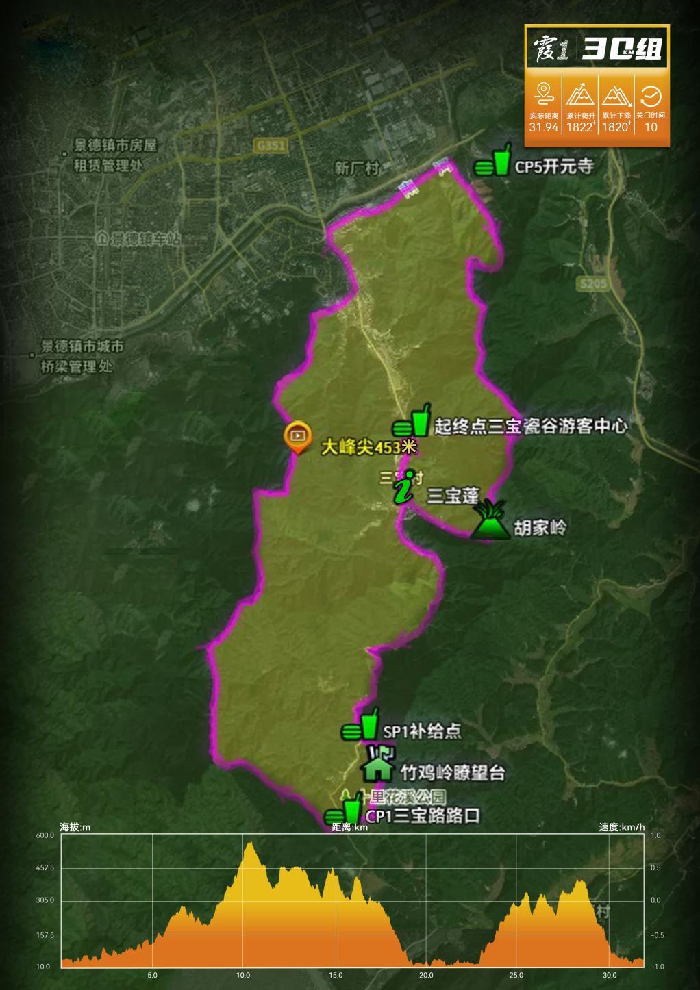 该算段,可以算是越野跑里的高速路,土路居多,爬3峰的时候坡度较大,其他地方爬升低。1-5峰也是景德镇户外徒步经典线路。
