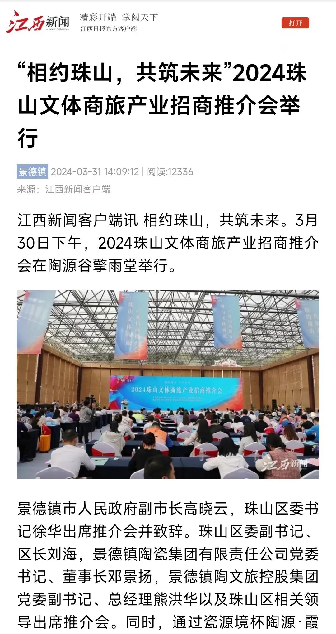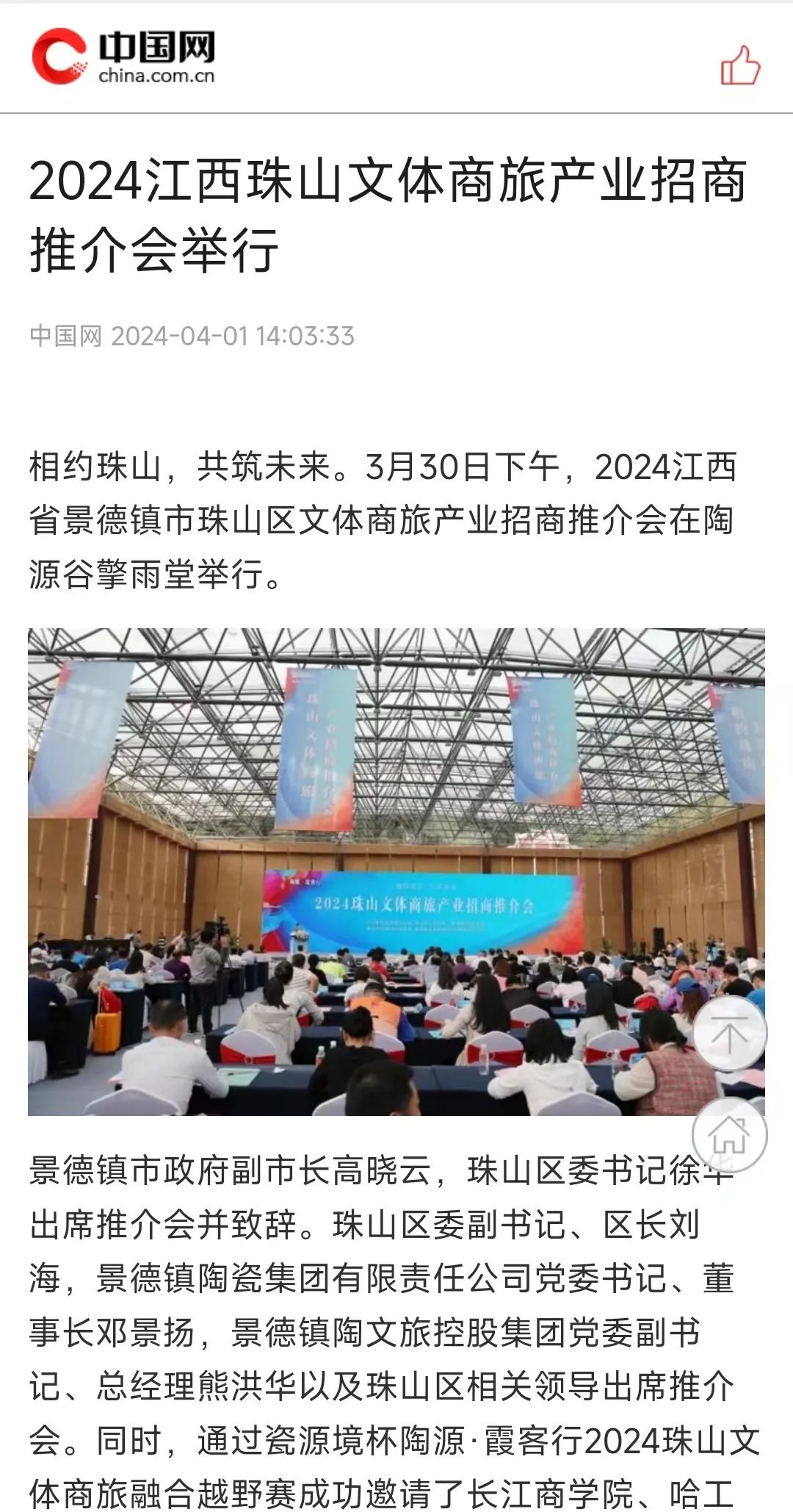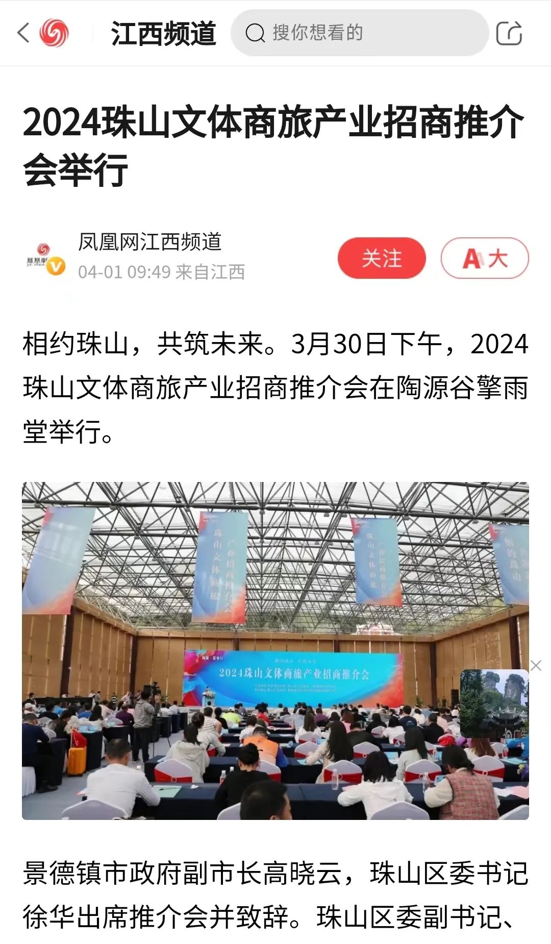 中国网、国际在线、凤凰网、江西新闻、江西广播电视台、大江网、景德云媒关注珠山区文体商旅产业招商推介会盛况