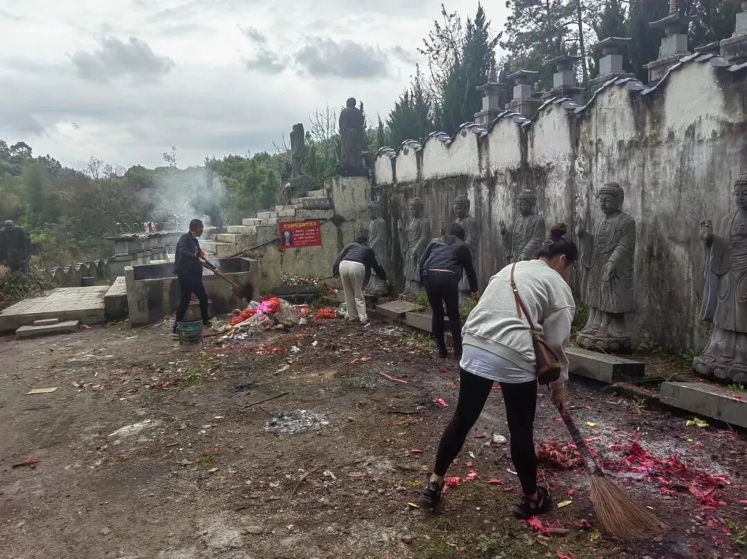 街村干部和志愿者们自3月30日开始,开展了为期十天的森林防火行动,通过微信公众号、小喇叭、张贴标语横幅等多种形式广泛开展森林火灾防控宣传。同时,街村干部和志愿者们在辖区53个大点位、100余个入山口设立文明劝导点,对前来祭祖的群众进行移风易俗宣传,通过“鞭炮、纸钱换鲜花”活动,倡导文明祭祀、绿色祭祀,助推文明新风尚;引导群众在山下集中焚烧点销毁、处置换下来的纸质祭祀用品,确保火种不上山。