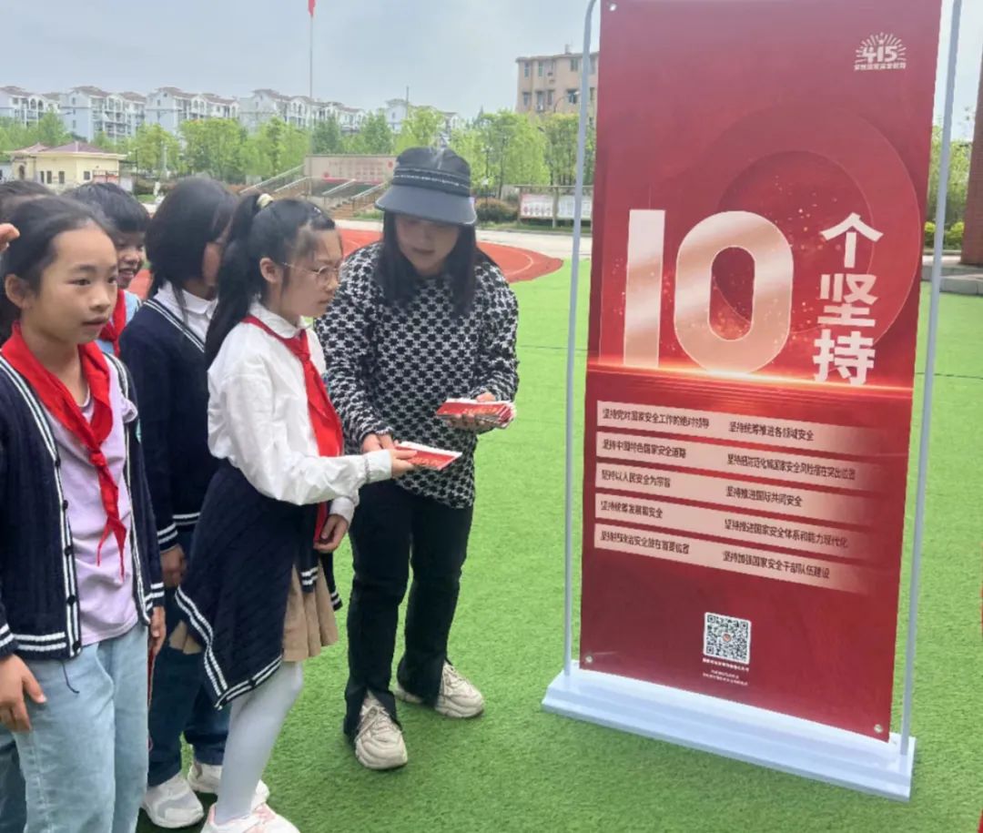 什么是“五个统筹”,何为“五大要素”,怎样做到维护国家安全“十四个坚持”……十七小分校的操场上,整齐摆放着一组国家安全教育展板,同学们一边驻足观看一边认真学习思考,通过展板介绍,初步了解了全民安全教育日的由来和《国家安全法》等相关知识,危害国家安全的行为有哪些,以及公民在维护国家安全中应尽到什么义务。