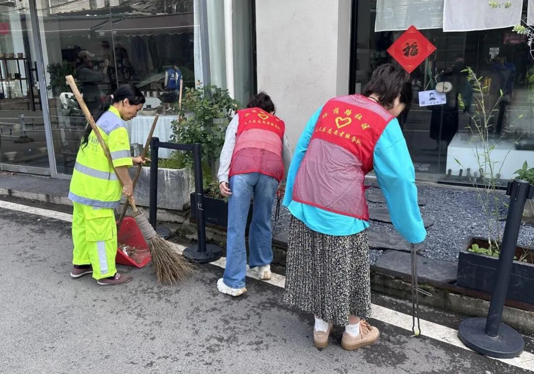 在“五一”长假即将来临之际,社区志愿者和玉禾田环卫工人在雕塑瓷厂周边主次干道和背街小巷拿着扫把、铲子等工具,全面细致清理辖区路面及绿化带内的树枝、杂草、白色垃圾、生活垃圾以及烟头,将路边的乱停放电动车搬到线内,为即将大量来景的游客提供一个舒适清洁的旅游环境。