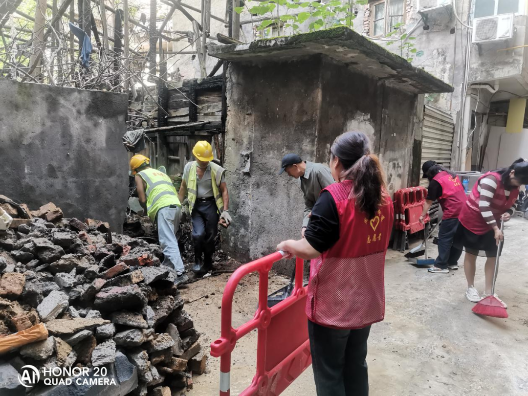 活动中,社区干部、党员志愿者、网格员和城管到辖区三轮车市场至日新百货门口对乱停乱放、占道经营及环境卫生进行整治,“耐心”劝说引导居民商户规范经营,服务群众零距离,既有法度,又有温度。“细心”环境治理,志愿者和玉禾田环卫工人对辖区红光瓷厂、背街小巷杂草丛生、乱堆乱放等现象进行大清理,防止病媒生物孳生,提前与“乱堆放”物品的归属人积极沟通协调,劝导居民自行清理。同时,网格员和志愿者通过边整治边宣传的方式,告知居民群众乱堆乱放物品的危害性,提高居民群众自我管理意识和文明意识,争做文明实践的宣传者、引领者和践行者。