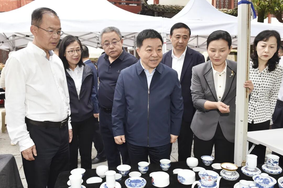 在景德镇雕塑瓷厂和浮梁县蛟潭镇礼芳村,叶建春调研扩大文旅消费和景德镇推进申遗等工作。他强调,要突出陶瓷文化的时代化表达和创新性发展,借助各地陶瓷官方旗舰店和景德镇本地的陶瓷艺术展览、交易市场等,推动陶瓷产品“出圈”、文旅市场繁荣。要着力发掘、保护丰富完整的陶瓷文化遗存,在摸清文物家底、优化展示形态上持续发力,扎实推进申遗工作,精彩展示无与伦比的景德镇陶瓷文化。在昌南茶业有限公司,叶建春详细了解茶叶采摘、制作、销售及产业促农增收等工作,要求强化品质提升、品牌打造和标准化生产,讲好浮梁茶文化历史,不断提升浮梁茶的市场影响力。