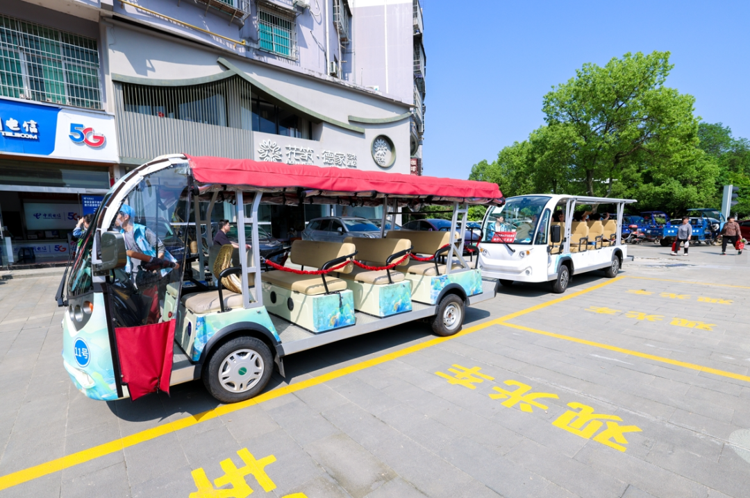 随着游客人数不断增加,为防止游客在陶源谷景区入口滞留,按照预演方案,珠山区新购置的备用观光车和预先培训的驾驶志愿者陆续投入使用,一些老年游客和小朋友也得到了贴心照顾,优先登车,开启陶源谷的愉快旅程。