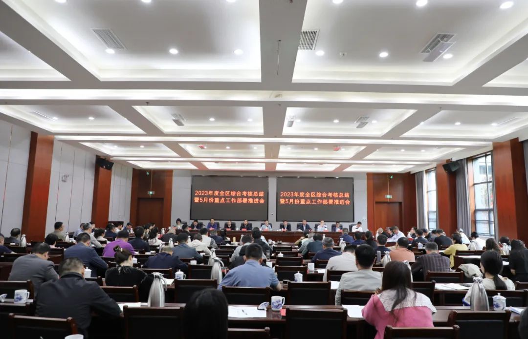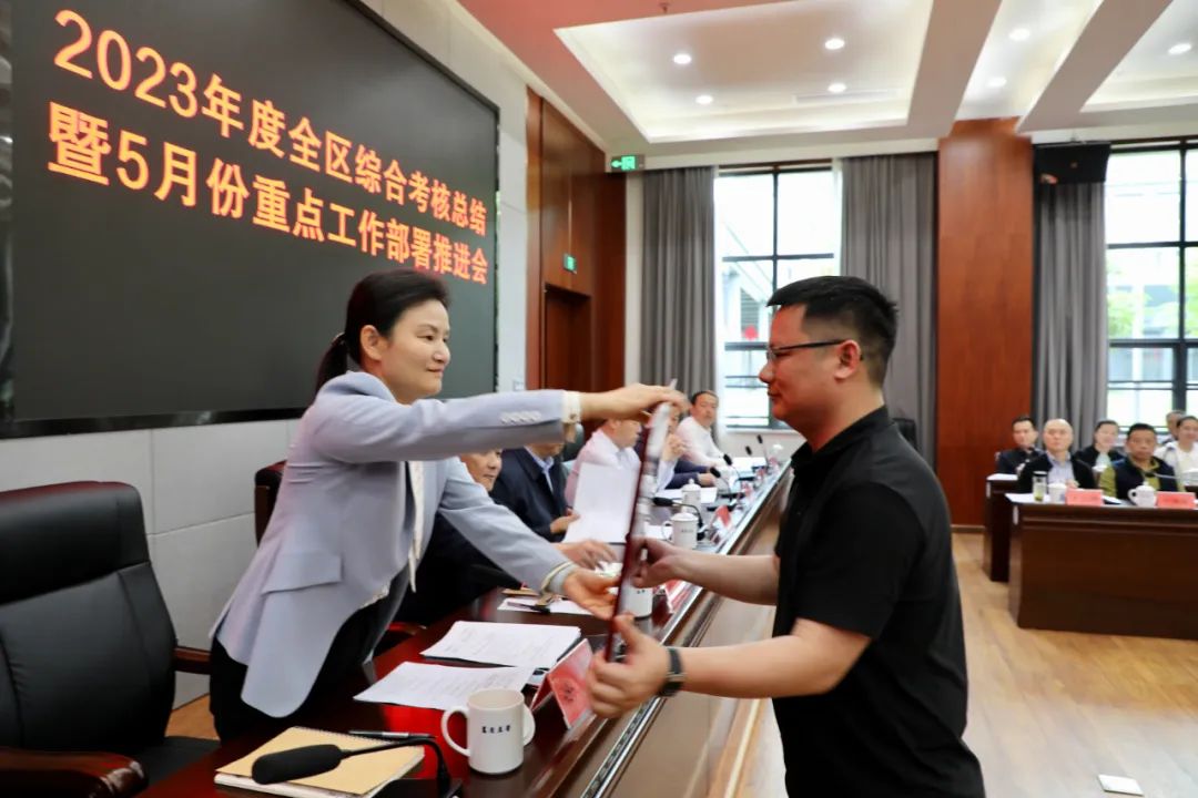 会议通报了2023年度全区综合考核结果,徐华、刘海等区领导为获得先进的街道(经开区)颁发奖牌,相关单位作了典型发言。会议复盘了“五一”期间旅游高峰服务提升相关工作,听取了重点项目推进情况汇报。