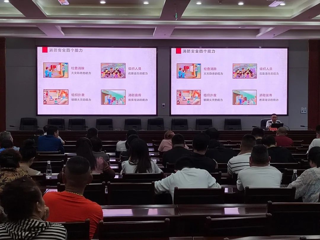 培训会上,消防救援大队的警官从如何预防火灾、如何正确灭火、火灾现场如何逃生等方面,结合近期火灾警示案例,深入浅出地向大家讲解了消防安全知识、火场逃生技能、消防器材的使用方法。