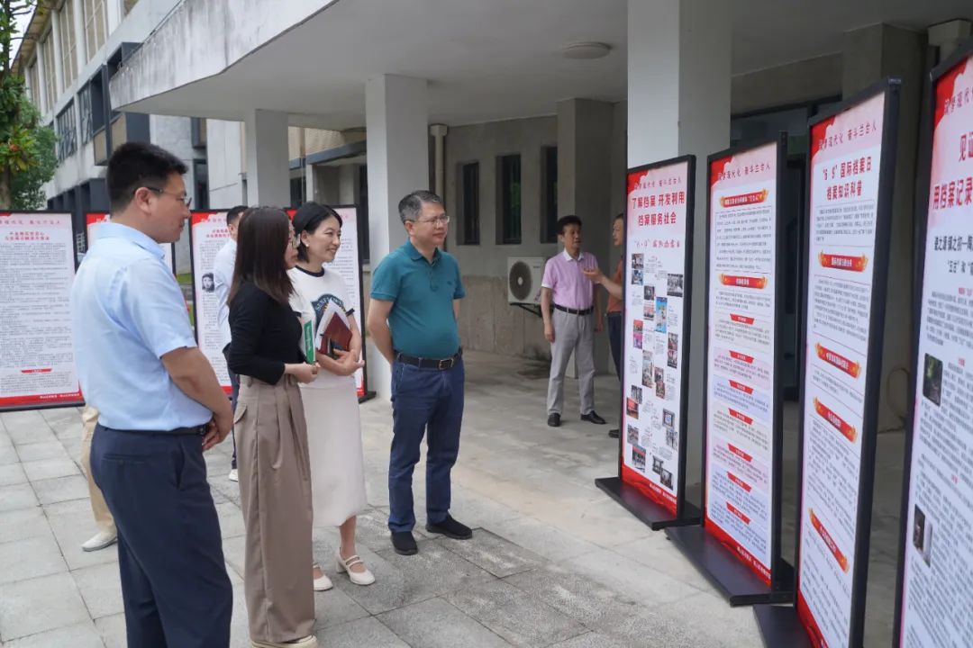 调研组一行观看了“筑梦现代化 奋斗兰台人”主题宣传展,这是珠山区档案馆为开展“6·9国际档案日”准备的系列活动之一,展板以翔实的图片为脉络,从“走进历史,讲好珠山红色故事”“了解档案,开发利用档案服务社会”“见证历史,用档案记录珠山的发展”三个方面,展示了近年来珠山区档案工作取得的成效。