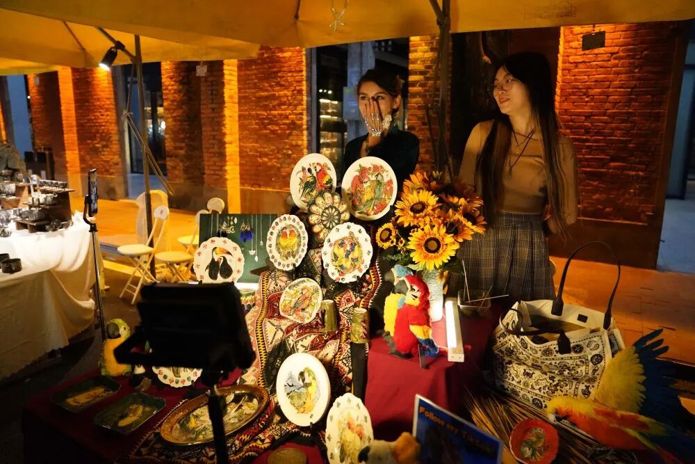 两名女孩在景德镇陶溪川文创街区销售创意瓷器。(资料照片)(新华社记者 周密 摄)
