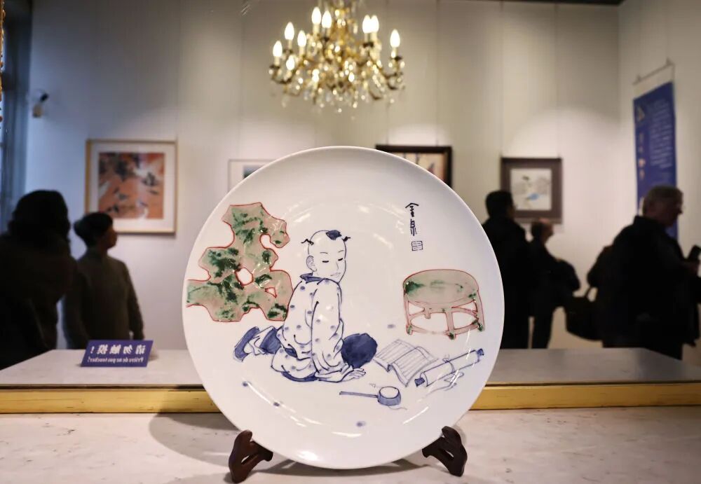 今年1月30日,嘉宾在法国巴黎中国文化中心举行的“丝路瓷行”中国景德镇陶瓷文化特展上参观。(新华社记者 高静 摄)