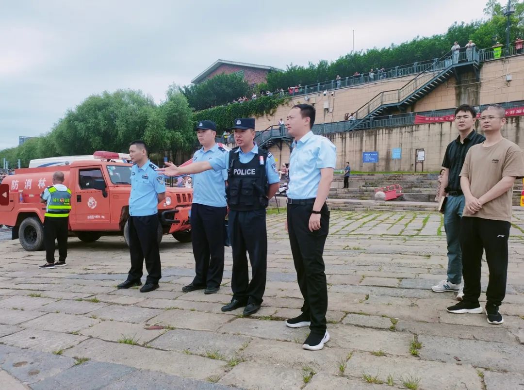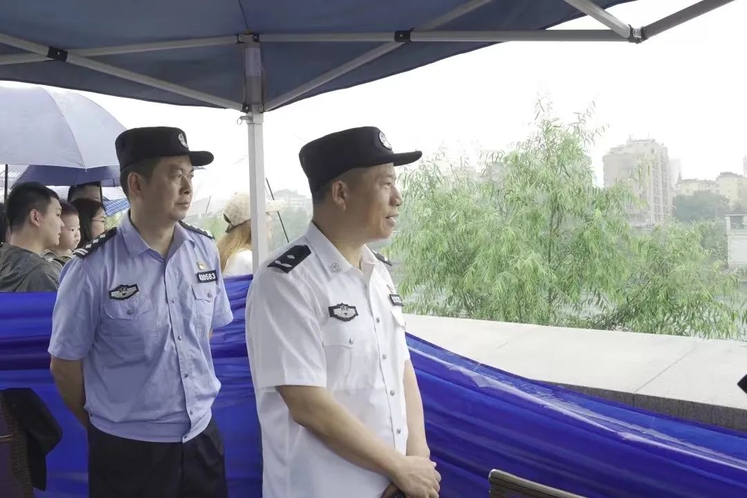 6月18日下午,区政府副区长、区公安局局长于辉耀现场指导划龙舟安保和防汛工作。