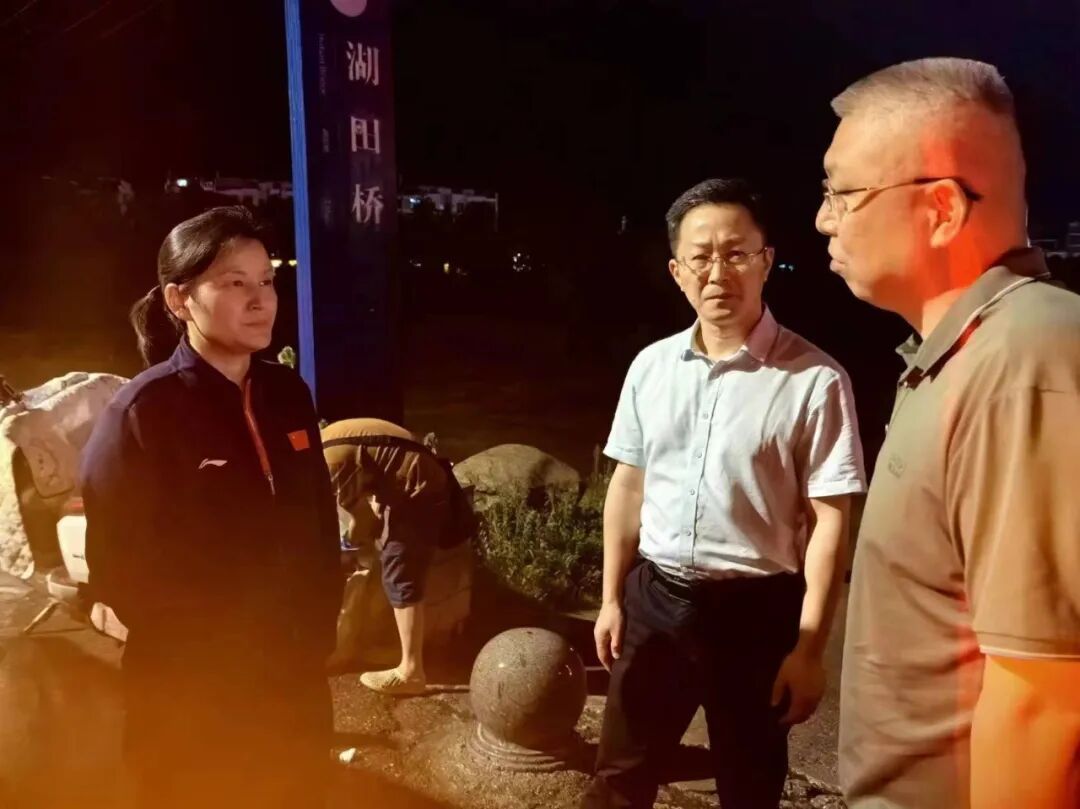 6月24日晚,区委书记徐华采取“四不两直”方式,深入竟成街道新田畈、周路口街道十一中宿舍、昌江街道、经开区,督导检查群众转移及防汛值班工作,区委常委、常务副区长杜钧瑞陪同。徐华仔细询问了值班值守安排,并对坚守岗位的基层干部表示了鼓励和慰问。她强调,必须坚决克服麻痹思想和侥幸心理,加强24小时值班值守,要及时掌握雨情、水情、汛情,做到提前预警,风险地带群众的转移工作要做到不漏一人、万无一失,全力以赴确保安全度汛!