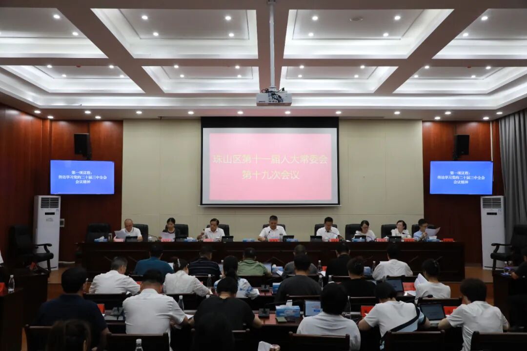 7月30日,珠山区第十一届人大常委会召开第十九次会议。区人大常委会党组书记、主任程传冬主持会议,副主任余畅、程美玉、江华珍、徐笑红、万元新及委员出席会议,出席人数符合法定人数。区政府常务副区长杜钧瑞,区法院院长陈翰朋,区检察院、区监委有关同志及各街道人大工委和相关部门负责人列席会议。
