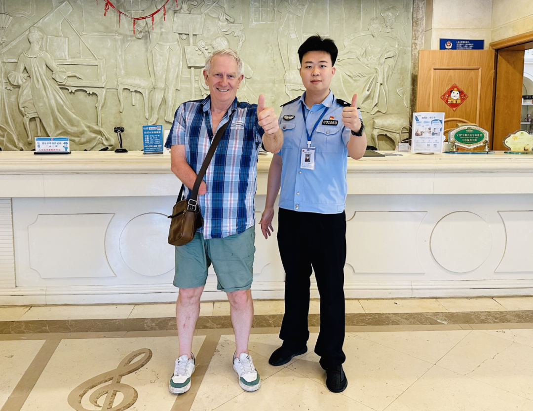 中国警察,very good!法国游客暴雨迷失街头,珠山公安热心救助