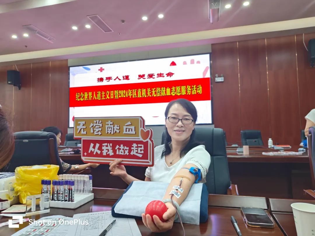 8月19日,为纪念世界人道主义日,珠山区红十字会、珠山区卫健委联合组织在珠山区发展中心内开展2024年区直机关无偿献血志愿服务活动,得到了广大干部职工的积极响应,大家纷纷踊跃参与,用实际行动传递爱心和温暖。程传冬、程美玉、虞晓军等区领导参与无偿献血活动。