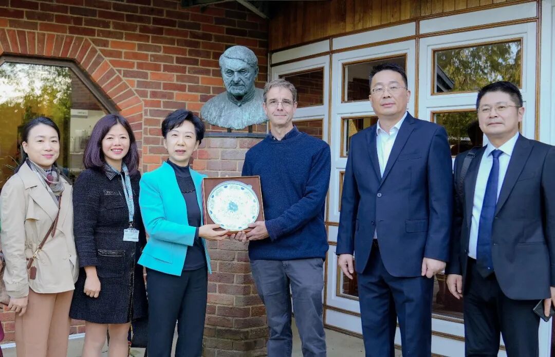 访问期间,景德镇代表团还向剑桥李约瑟研究所赠送纪念瓷盘,并瞻仰了李约瑟墓。