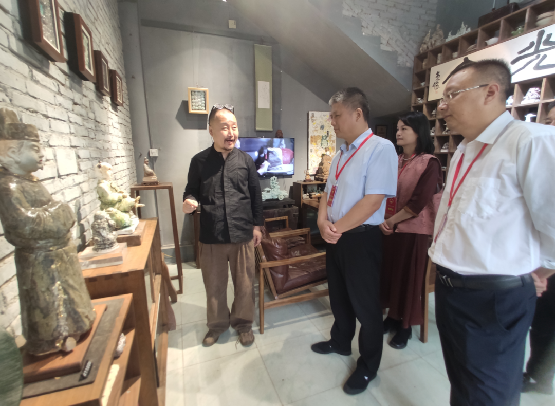区人大代表实地了解国际青年旅舍(雕塑瓷厂店)、孙燕明工作室、光舍陶瓷、大学生创意商城等景区企业生产经营状况。与属地新厂街道、雕塑瓷厂景区相关企业、青年大学生、“景漂”人才等深入交流,就助力瓷博会顺利举办、提升珠山区城市文化软实力、推动文商旅融合发展等工作提出意见建议。