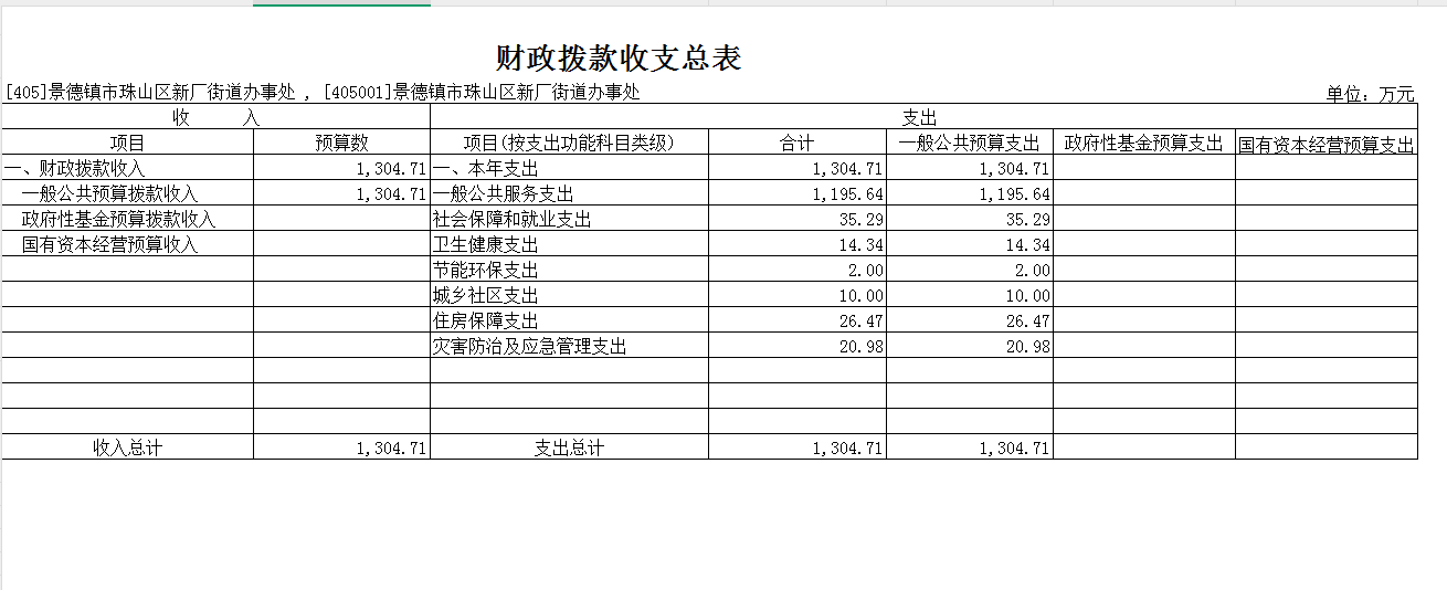 第二部分江西景德镇市珠山区新厂街道办事处2025年部门预算表