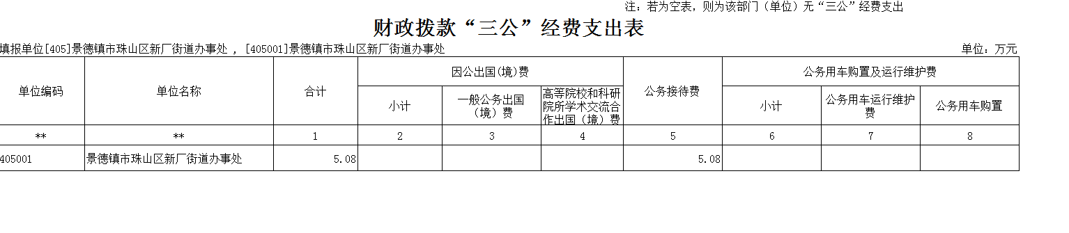 (二)“三公”经费:指用财政拨款安排的因公出国(境)费、公务用车购置及运行维护费和公务接待费。其中,因公出国(境)费反映单位公务出国(境)的国际旅费、国外城市间交通费、住宿费、伙食费、培训费、公杂费等支出;公务用车购置及运行维护费反映单位公务用车车辆购置支出