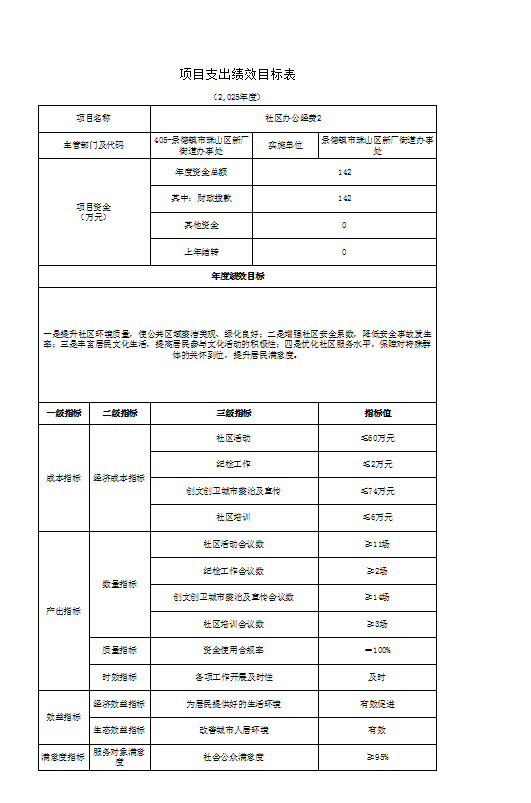 (九)社区办公经费项目情况说明