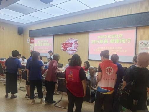 社区活动室里,摆放着慈善理念宣传展板,来自景德镇市慈善总会的志愿者们穿着醒目的志愿马甲,在现场忙碌地穿梭,为居民们引导服务、发放慈善宣传彩页,讲解《慈善法》知识,慈善的广泛内涵不仅是捐款捐物,还包括志愿服务、邻里互助等多种形式。活动另一边是医护人员忙碌的健康服务身影,来自市第一人民医院药剂党支部的医护人员,他们用热情的态度和专业的素养为社区居民提供了专业的血压、血糖检测、用药咨询、健康检测等服务。居民们围坐在咨询台前,仔细询问着自己的身体状况和用药疑惑,医护人员耐心细致地一一解答,让居民们对自身用药安全有了更清晰的认知。