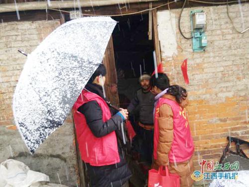 大雪纷飞、社区看望空巢老人