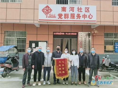 3月23日上午,珠山区新厂街道南河社区印机居民代表将一面印有“心系百姓、为民排忧”的锦旗,送到社区书记余菁华手中,真心感谢社区工作人员处处为居民着想,感谢社区工作人员的耐心服务和解答,解决燃眉之急。印机小区原是中景集团职工宿舍,企业改制后有南河社区接管。印机居民代表激动的说;“自南河社区接管印机小区后,印机小区发生了翻天覆地的变化,她们日以继夜为小区改造辛勤工作。在疫情期间严防死守,共克时艰,为小区赢得了一片安宁,居民由衷的感谢,特送锦旗略表谢意。”