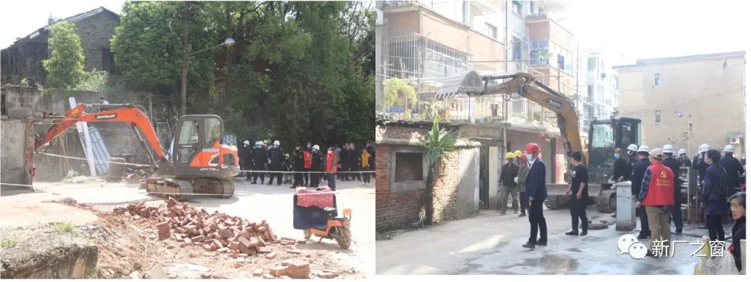 改造是民心所向,拆违是大势所趋。在前期充分沟通的基础上,越来越多的违章建筑陆续被拆除,但仍有部分违建户抵制改造,坚决不同意拆除,他们置法律于不顾,损害了绝大多数居民合法权益,严重阻碍改造建设项目的发展。为严格依法执行城乡规划、维护城乡规划的权威性,4月16日上午,新厂街道集中力量对523厂宿舍内违章搭建开展集中拆除行动。此次行动得到了区相关部门的大力支持,区政府副区长黄爱喜到现场亲自调度,公安、城管、住建、消防、卫健、街道社区各司其职,相互配合,整个拆除过程平稳顺利,共拆除违章搭建30余处,约600平米。