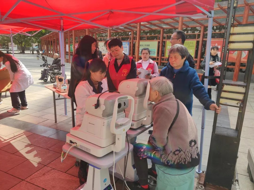 为提升广大居民的眼健康理念,普及眼部知识,增强居民视力防控意识和健康的用眼习惯,4月7日上午,新厂街道林荫路社区新时代文明实践站、退役军人服务站、老科协联合倾眸视界眼科中心在长虹金域中央小区“街坊邻里”广场开展“关爱视力 走进社区”为主题的眼健康检查活动。
