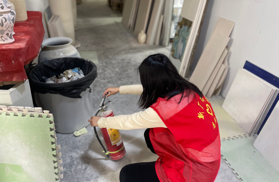 活动中,志愿者分别到九小场所、梭式窑等进行实地排查,重点检查各场所安全通道是否畅通、灭火器是否被杂物遮挡等。针对排查中发现的问题隐患,进行及时整改,把安全隐患消灭在萌芽状态,确保一旦发生突发情况,要迅速果断处置到位。并以案说教让居民群众认识到了消防安全的重要性,懂得了日常生活中火灾隐患的自我排查以及遇到火灾的安全逃生方法。