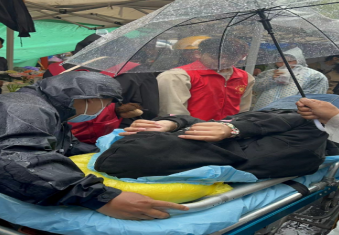 随后,“窑火红”党员志愿者留在现场队伤者进行安抚,另一名东三郡社区志愿者跑到路边等侯120救护车并引导急救人员抵达现场。随后志愿者们还冒雨帮忙将担架抬下阶梯。沿途游客纷纷表示:“还好有志愿者”,并对志愿者们“点赞”。