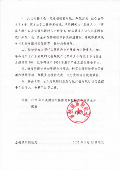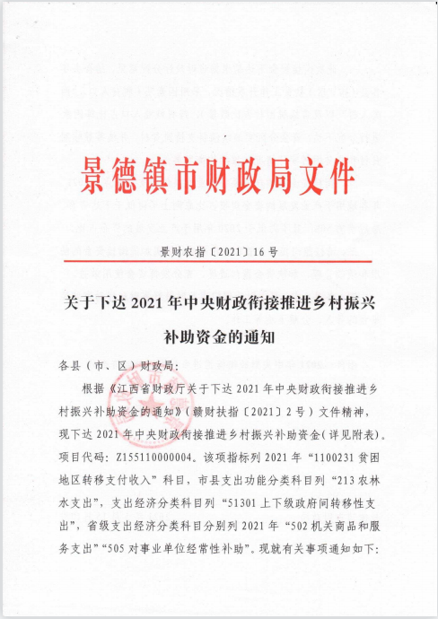 收到2021年中央财政衔接推进乡村振兴补助资金451.8万