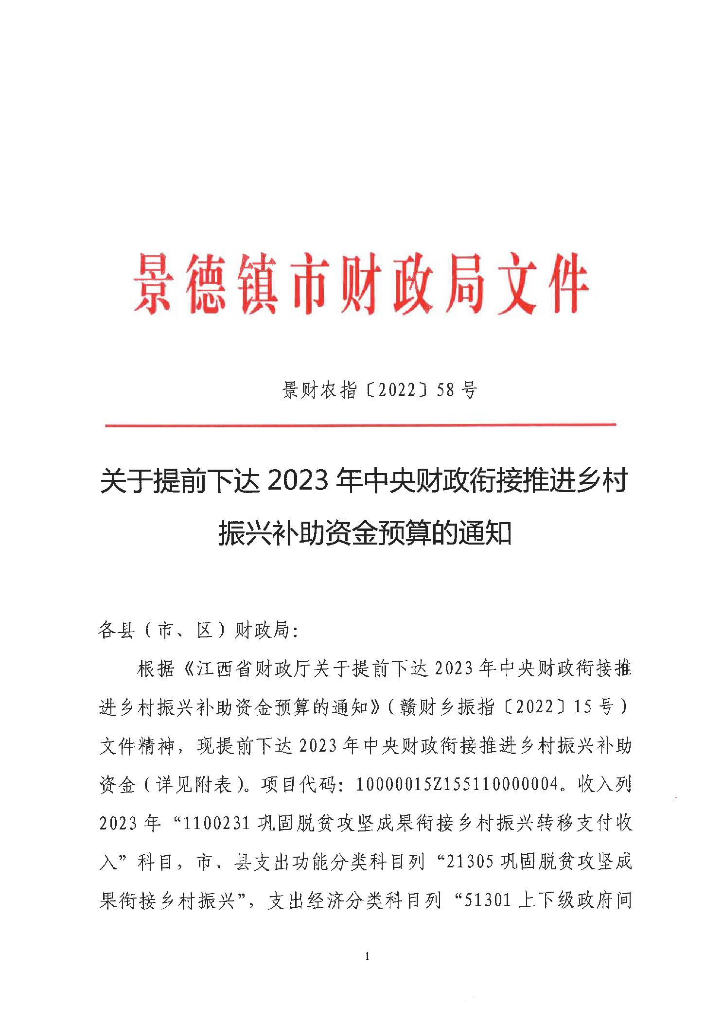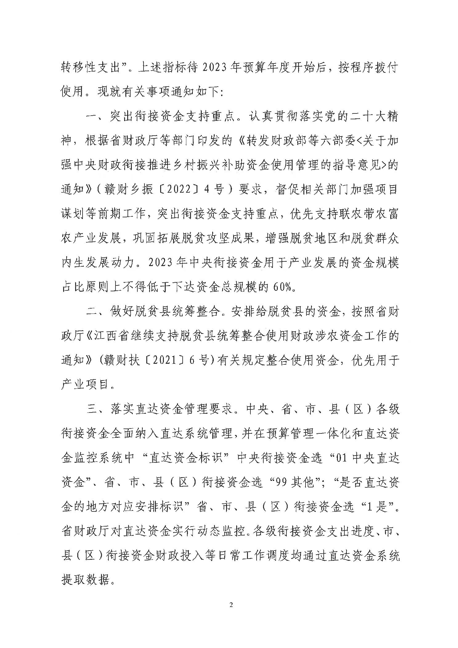 关于提前下达2023年中央财政衔接推进乡村振兴补助资金预算的通知