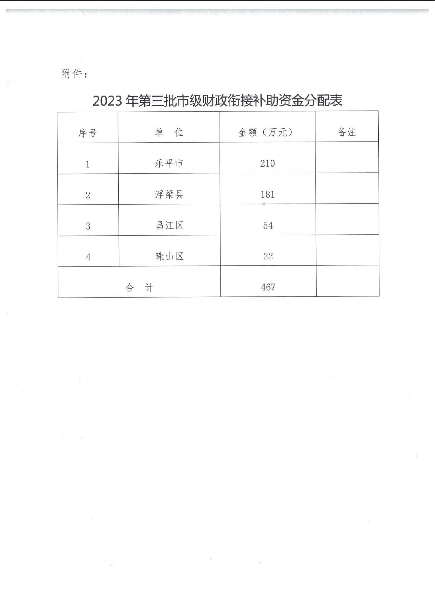 关于下达2023年第三批市级财政衔接推进乡村振兴补助资金预算的通知