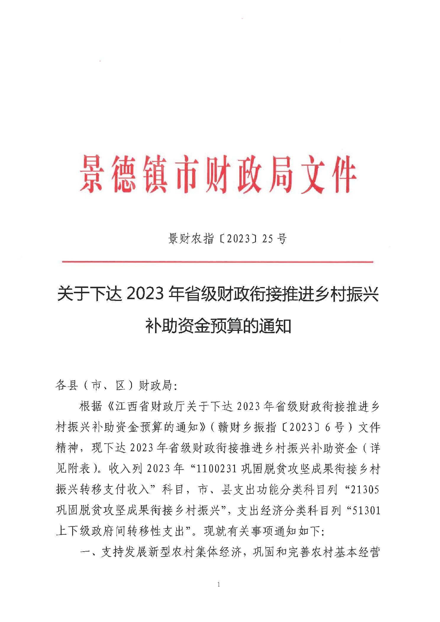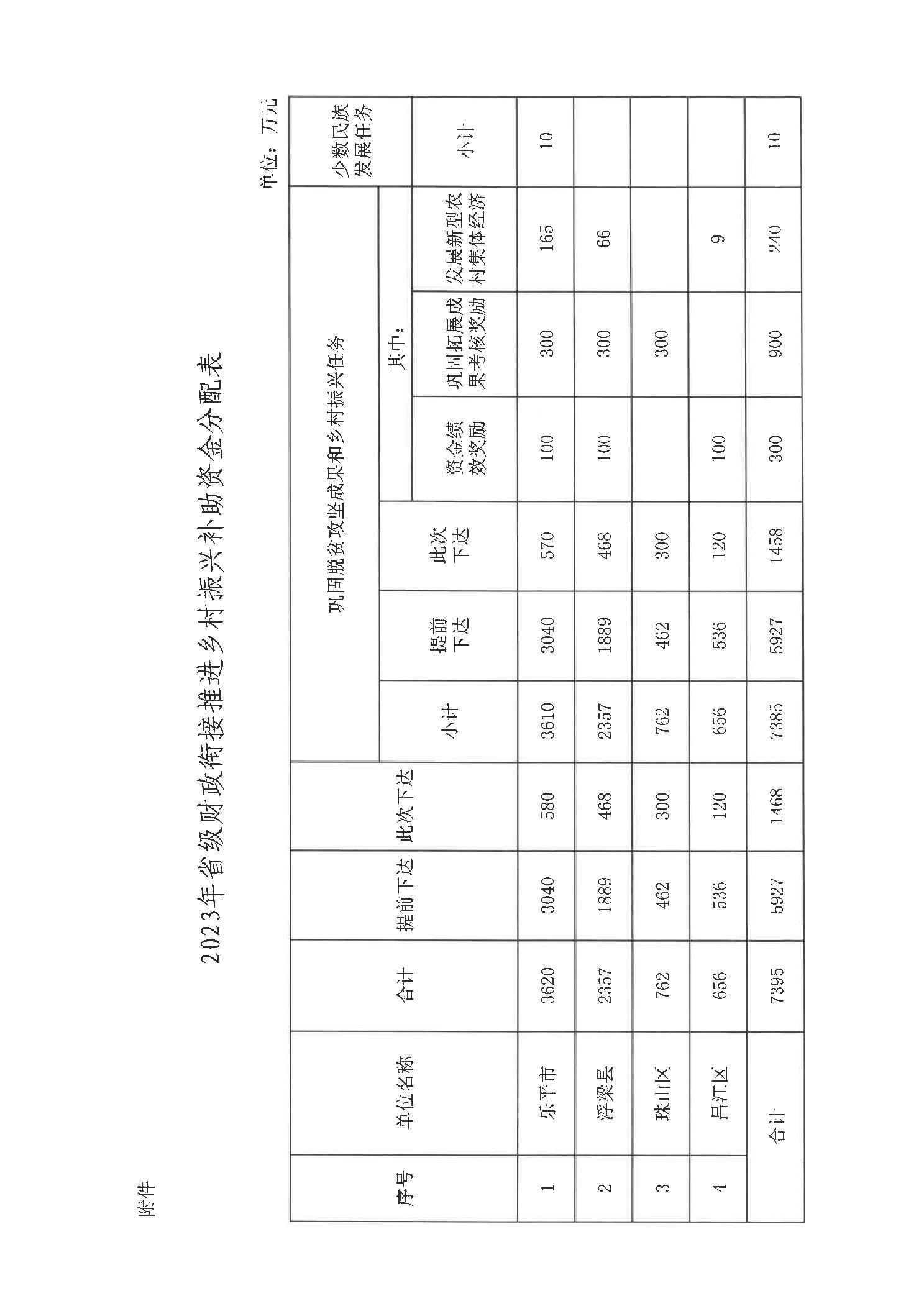 关于下达2023年省级财政衔接推进乡村振兴补助资金预算的通知