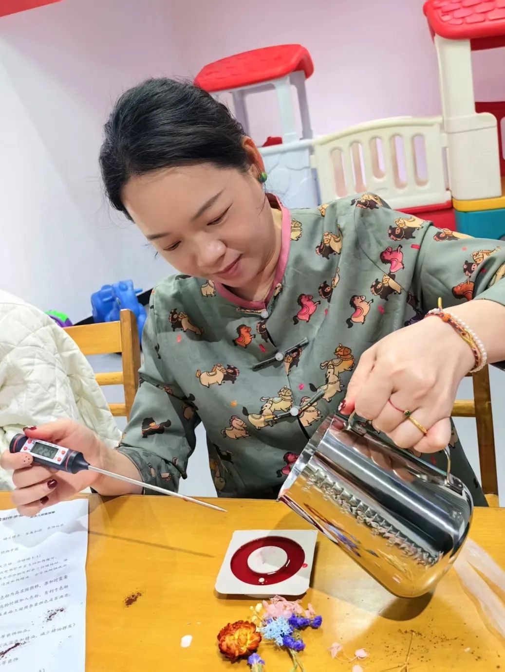活动开始之前,图书馆馆长现场为大家演示了大豆蜡融化、精油调配、干花点缀的全流程:温度把控的严谨、精油滴数的精准、创意构图的自由……科学与美学的碰撞,让每位参与者都跃跃欲试。