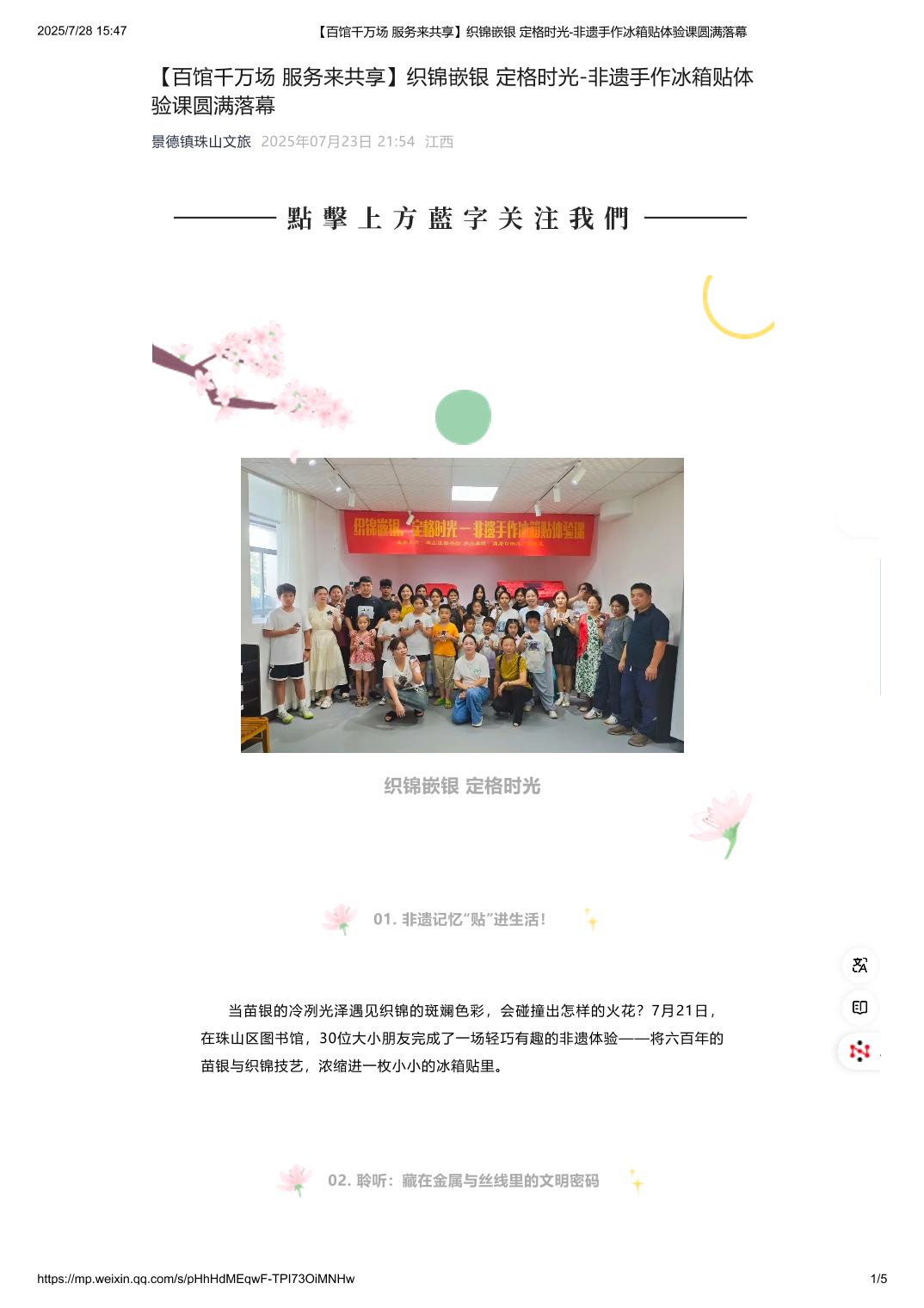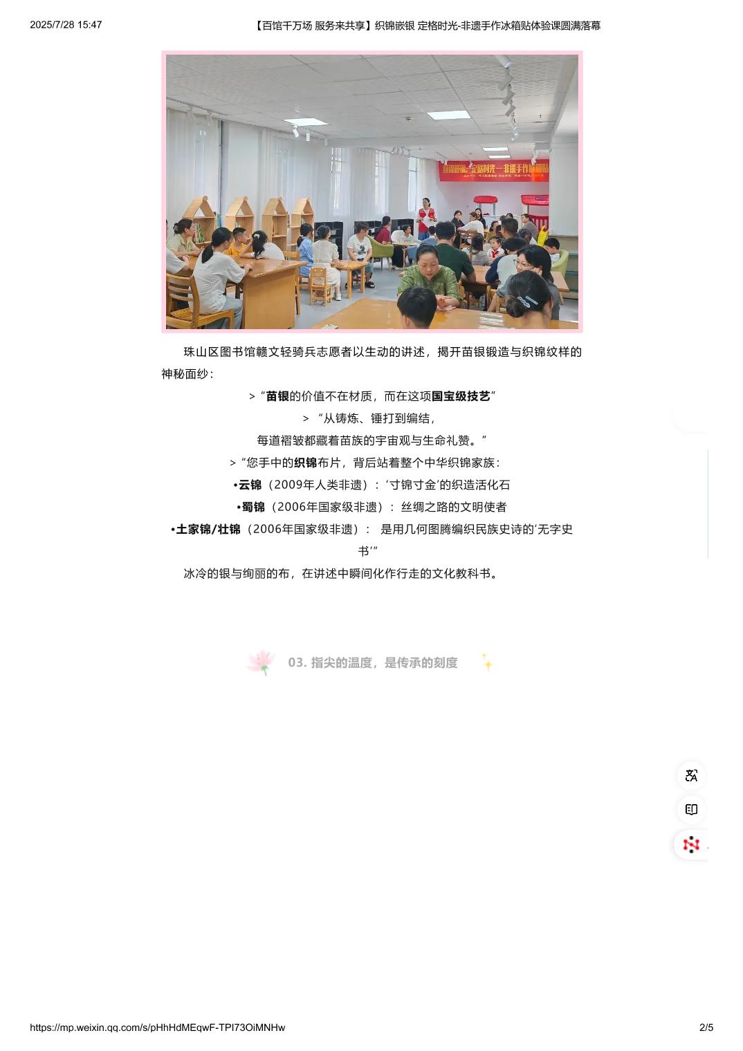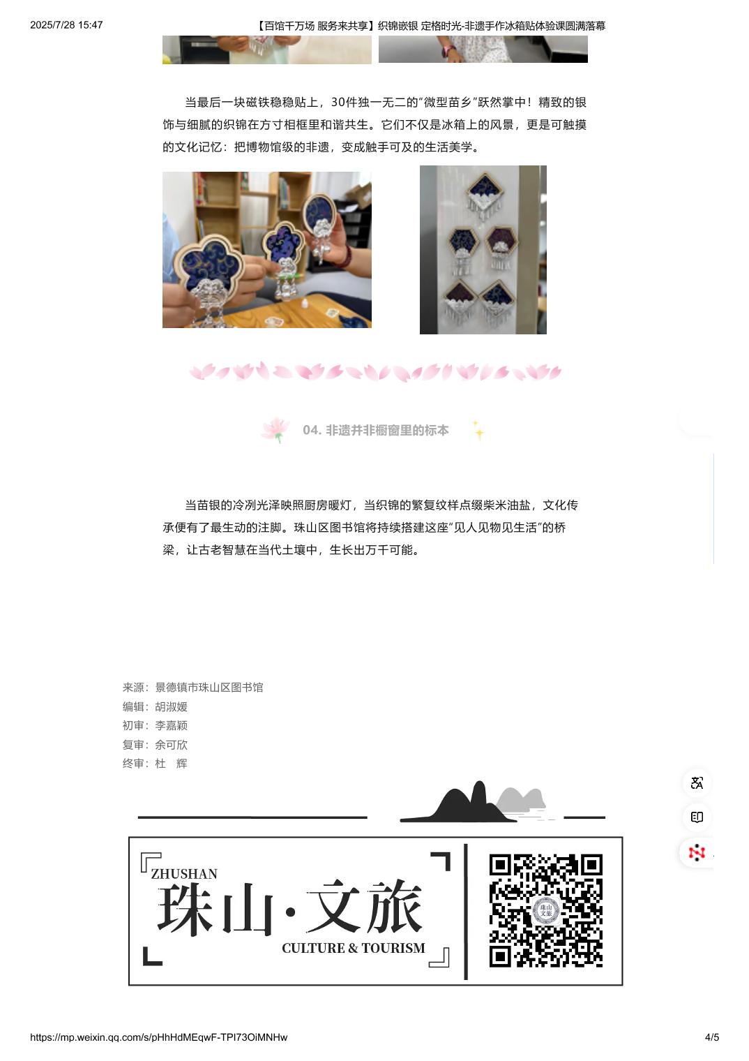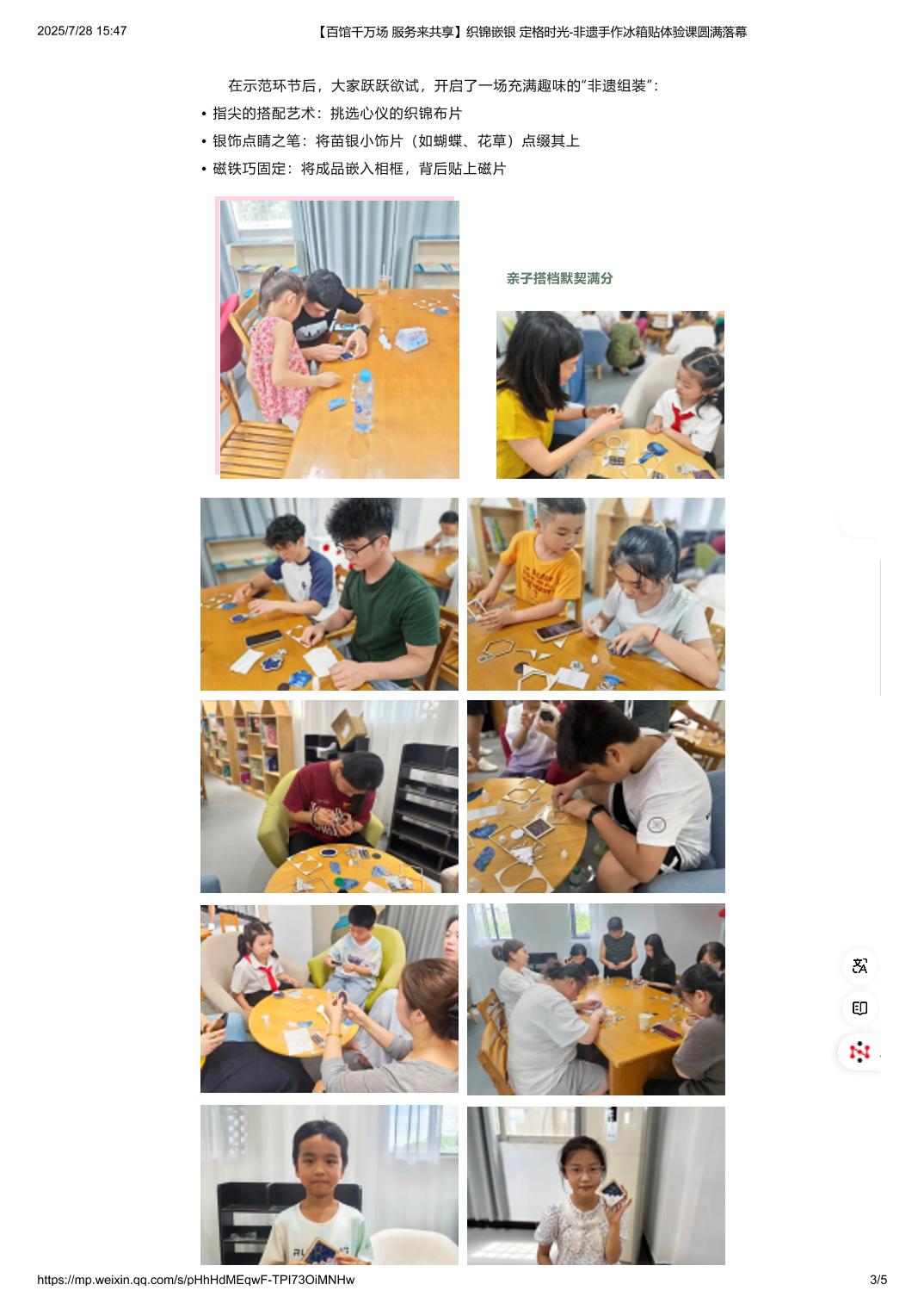 【百馆千万场 服务来共享】织锦嵌银 定格时光-非遗手作冰箱贴体验课圆满落幕