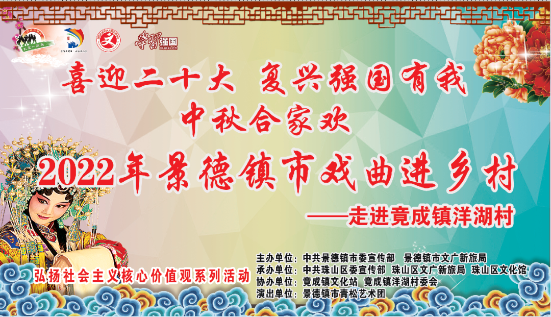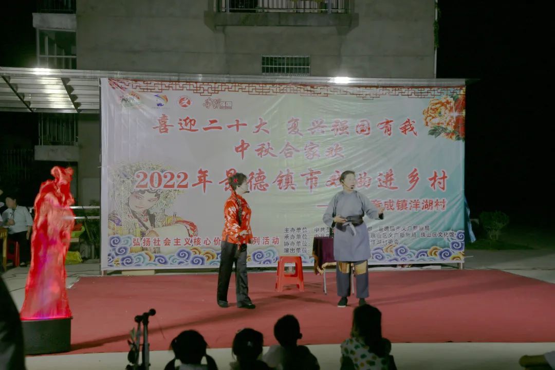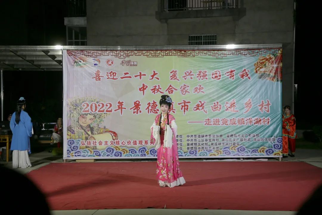 为迎接党的二十大胜利召开,进一步丰富和活跃农村群众文化生活,让基层百姓共享文化成果,9月8日晚,由中共景德镇市委宣传部、景德镇市文广新旅局主办,中共珠山区委宣传部、珠山区文广新旅局、珠山区文化馆承办的“喜迎二十大 复兴强国有我 中秋合家欢”2022年景德镇市戏曲进乡村活动走进竟成镇洋湖村进行文化惠民演出,不断增强群众的获得感、幸福感。