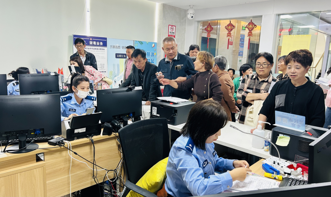 二是热情服务做好受理接待工作,不断延伸服务触角。一方面合理调配警力指派专人耐心指导老人填写申请表、使用自助拍照机、申领排队号码,讲解出入境证件办理流程,积极解答各种咨询和问题,确保整个大厅秩序井然;另一方面窗口民、辅警把微笑、耐心、细心服务贯穿始终,高质高效处理申请材料,确保每一项办件“零差错”。