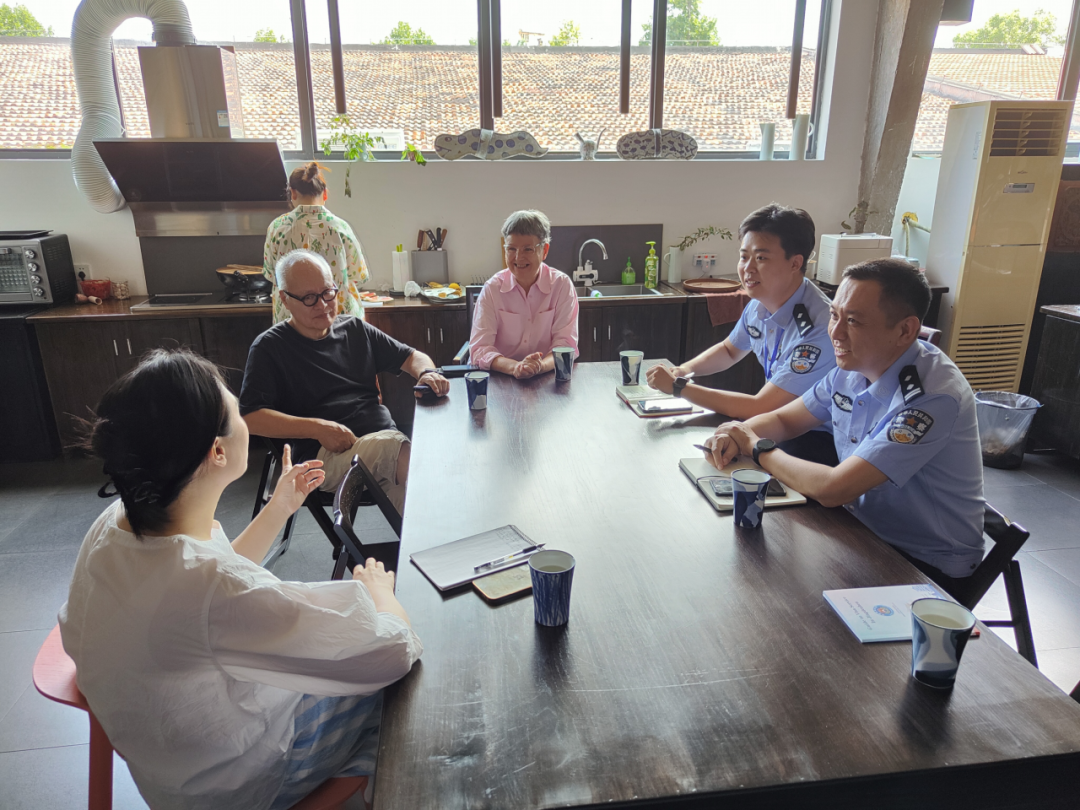 7月11日,出入境管理科民警李昱辰与日本籍艺术家安某在“警民通”聊天时了解到,安某与其妻子英国籍艺术家阿里芙有想要办理中国绿卡的意愿,7月12日上午,李昱辰联合市公安局出入境管理处民警主动上门走访。