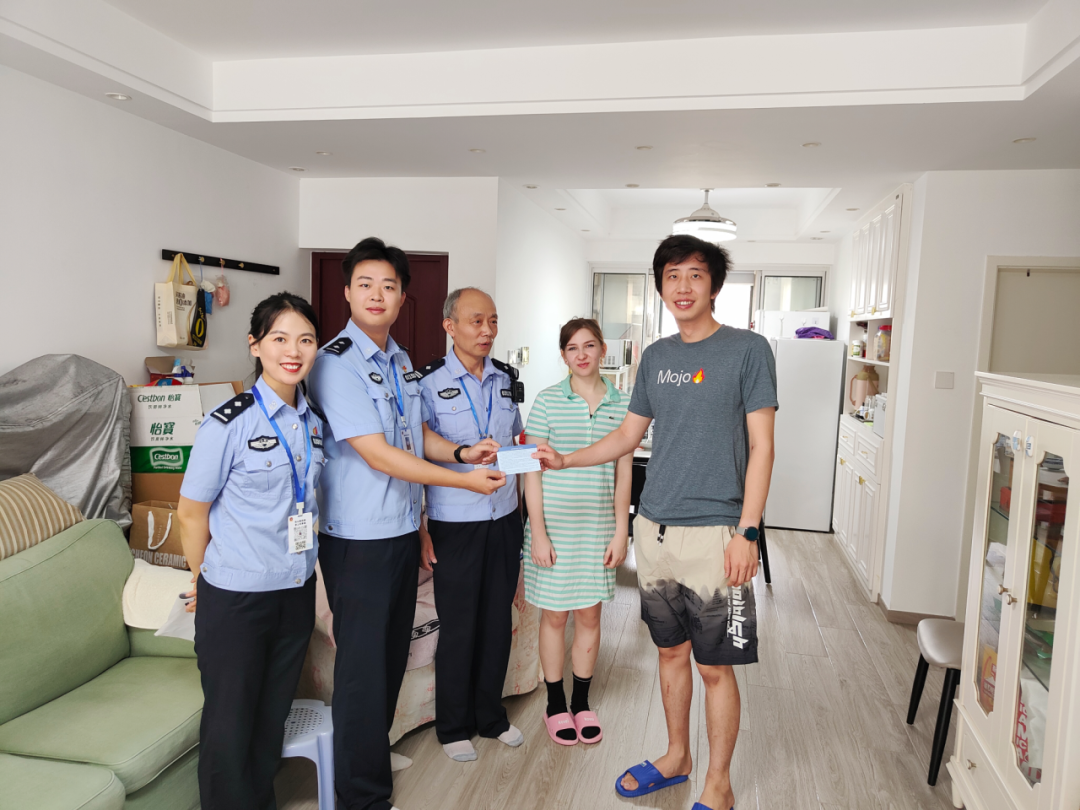 9月19日晚上,外籍友人的家属高先生通过“珠山警民通”与民警取得联系,称自己的外孙和其女友刚从国外入境,需24小时内向所在派出所报备。翌日一早,民警主动上门,与高先生一家人面对面亲切交流谈心,仔细了解他们的工作、生活情况,听取他们在我市停居留方面遇到的问题和困难,同时围绕外籍友人在华居留须知、出入境法律法规等进行政策宣讲。告知高先生,珠山分局将会根据外籍友人的有效证件、入境时间、居住事由、居留期限,为他们做好临住登记,并提醒注意签证到期时间,如有办理延签需要,可及时到出入境办证大厅办理签注延期。高先生对出入境民警对出入境民警的贴心服务连连称赞。