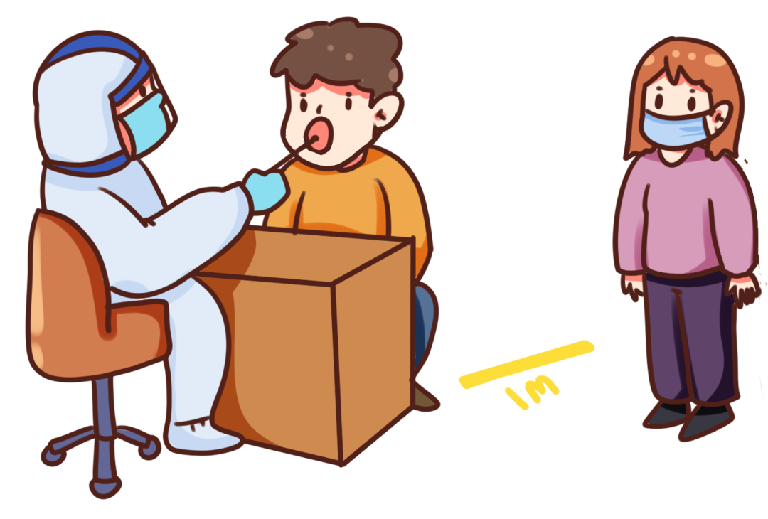 不要着急落座,等医务人员做完上一个采样、完成手消毒并拿出新棉签后,再迅速上前坐好,脱下口罩张嘴采样。