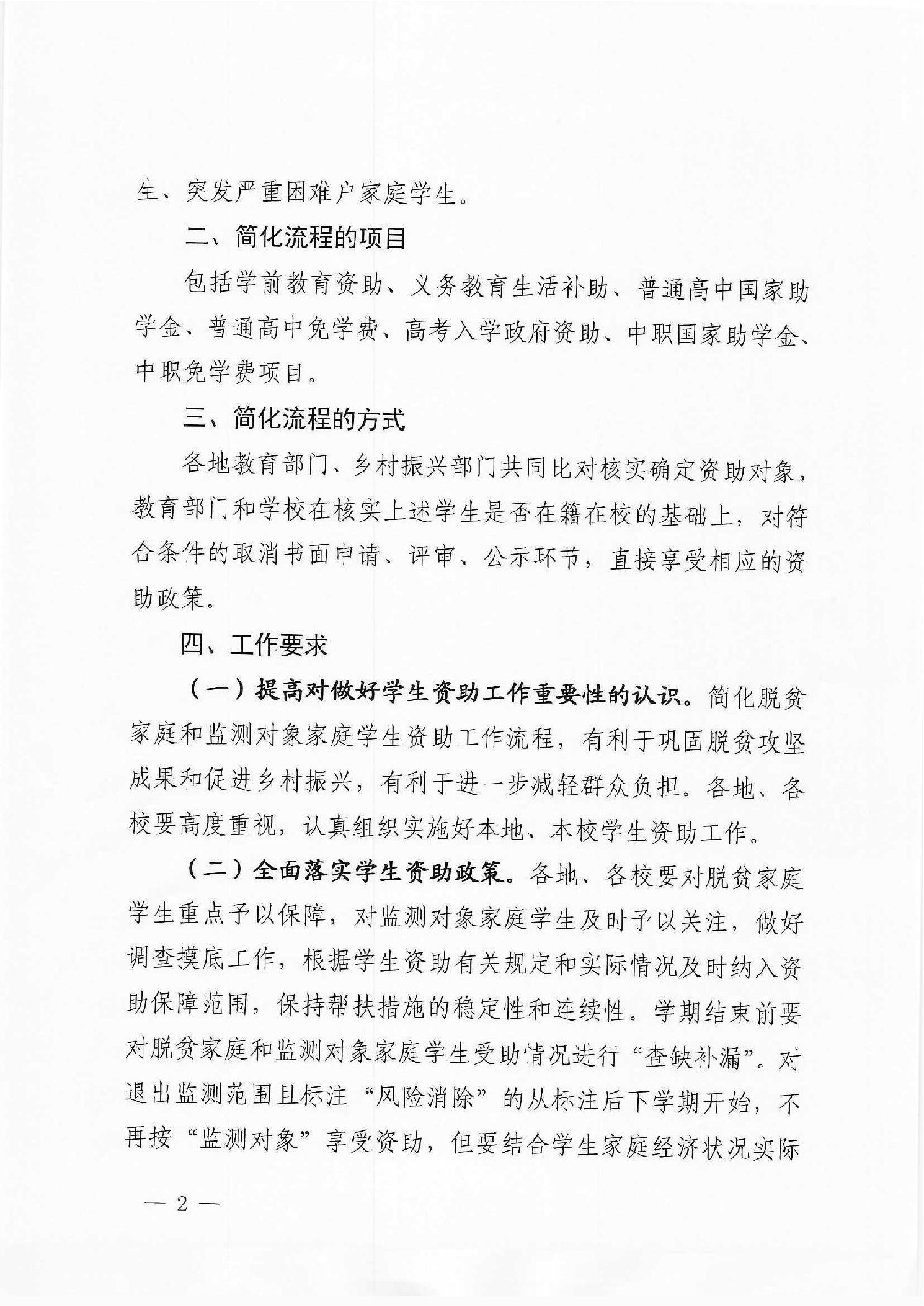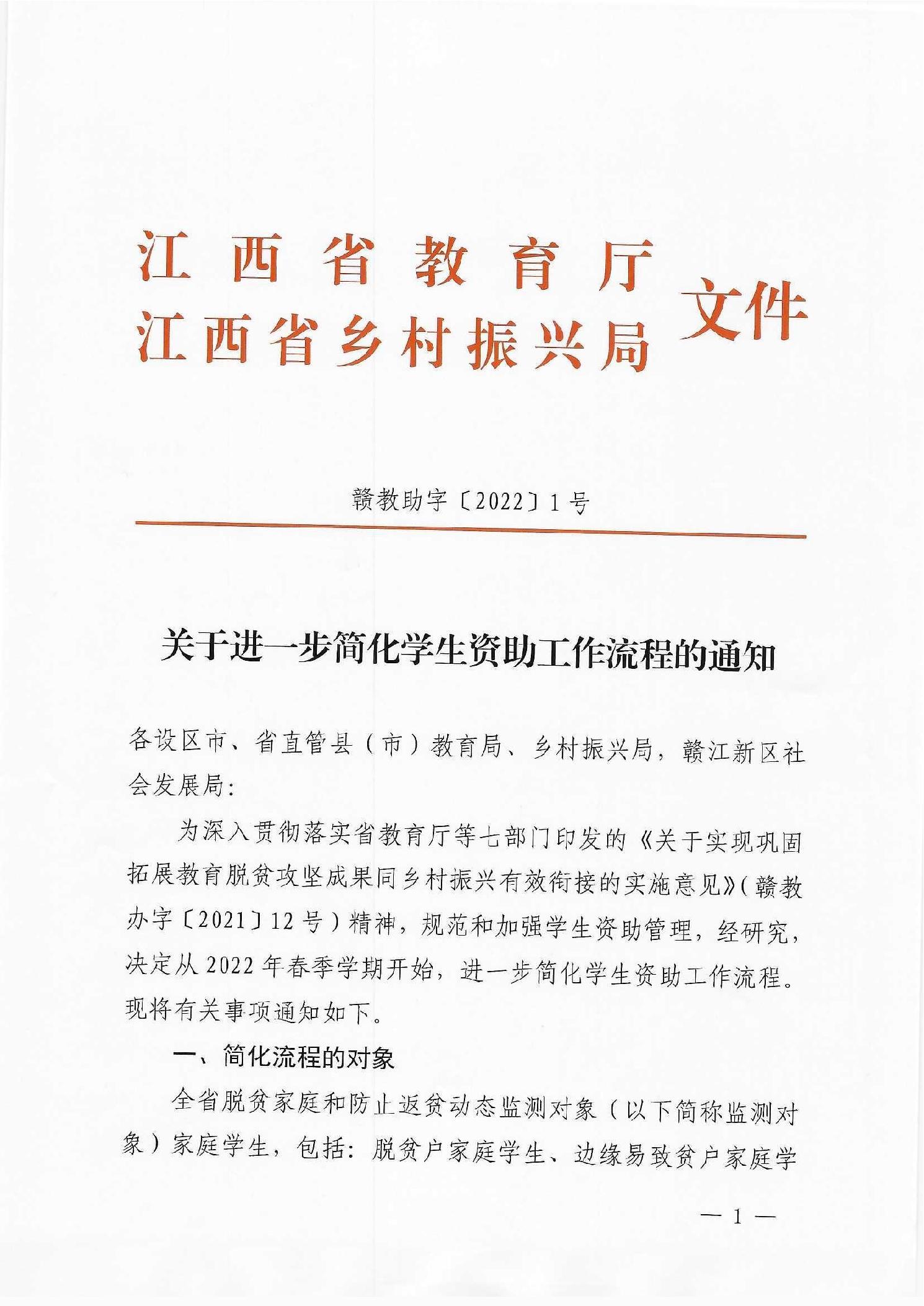 (赣教助字〔2022〕1号)关于进一步简化学生资助工作流程的通知